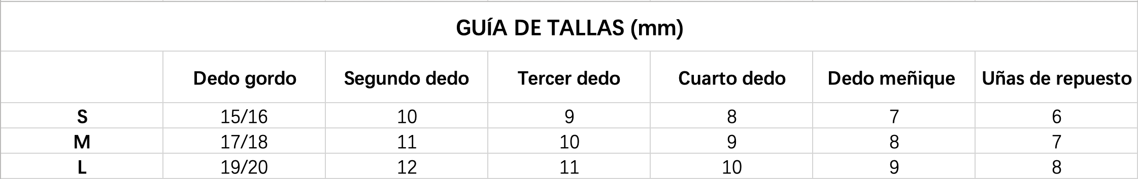 *Recuerda que por motivos de higiene no se admiten devoluciones si la talla no corresponde en el caso de haber medido mal tus uñas.