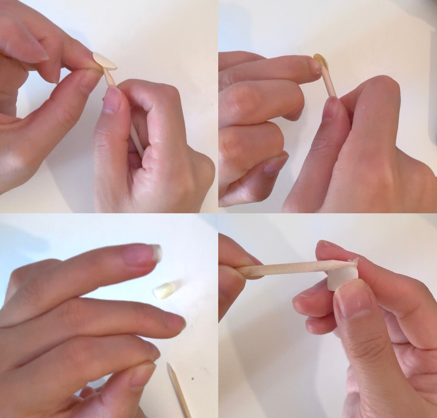 Gira el palito sobre el adhesivo para retirarlo sin dañar la uña.