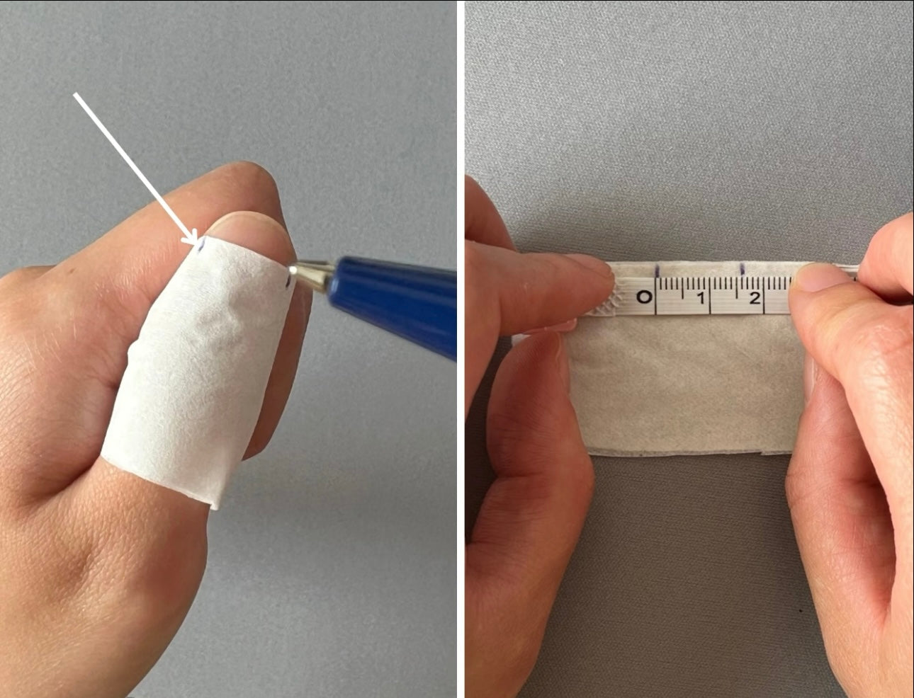 Marca con un rotulador los dos extremos de tu uña sobre la cinta.